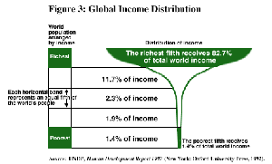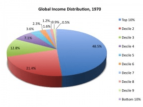 Today 40% of world’s wealth is owned by 1% of the population. In fact, the richest fifth of the population receives 82.7% of the total world income.