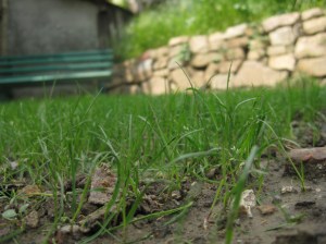 After being away from the Center for a week at our community retreat, I greeted Alin at our gate as he came from school and took him up to see the plot where he had planted and watered. His face lit up when he saw the green grass sprouting up.